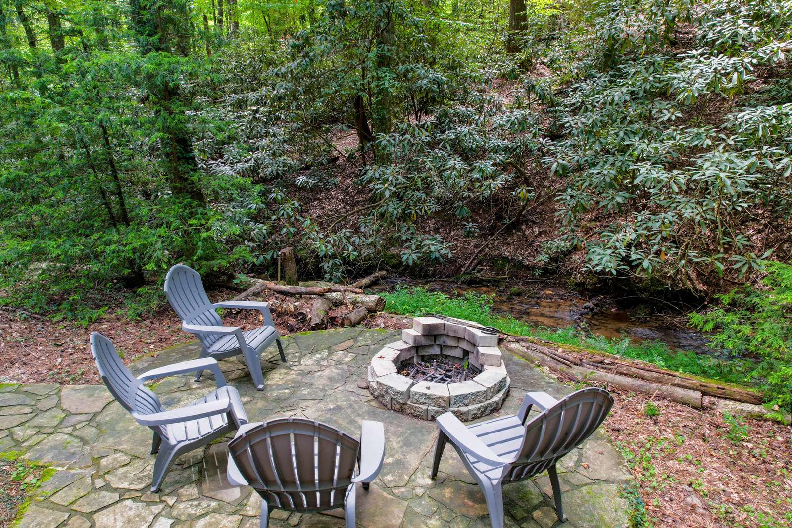 The setting is what makes Creekside Paradise truly special. A year-round creek winds around the backyard, offering soothing sounds and a peaceful backdrop. For hikers, adventure starts at your doorstep—the famous Benton MacKaye Trail runs right alongside the property, providing immediate access to one of the region’s premier hiking routes.